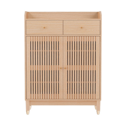 The Artiss Shoe Rack provides versatile storage for your footwear, featuring adjustable shelves and pull-out drawers to hold up to 16 pairs of shoes. Crafted from particle board with a paper veneer, this rack includes ventilated doors, pine wood legs, and a wall attachment for simple installation.