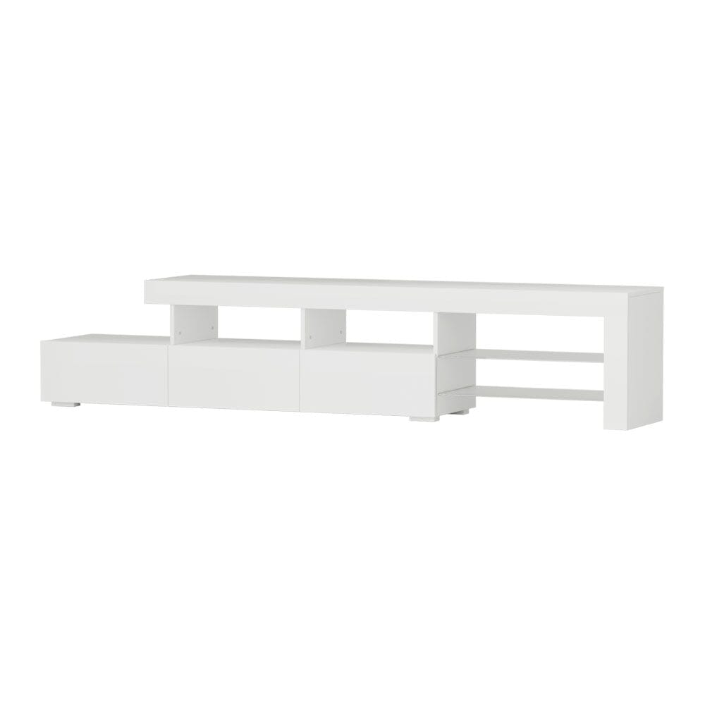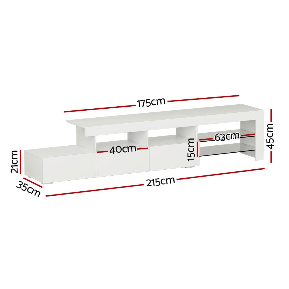 Want to add a WOW-effect to your living room? Our Artiss LED entertainment unit won't disappoint you. Boasting a unique combination of functionality and creativity, this entertainment unit is designed to enhance your living space and create a pleasant ambience. The entertainment unit features built-in RGB LED lighting that you can customise into 16 different colours and four flashing modes with a touch of a button. It will perfectly complement your modern home decor and enable you to achieve a one-of-a-kind look. Having been constructed from 15mm thick particle board with UV high gloss on the front and melamine finish, this piece of furniture is quite sturdy and will withstand the test of time. It has spacious drawers with smooth metal runners for hassle-free operation and two tempered glass shelves to store all your entertainment paraphernalia. Bring this uniquely designed entertainment unit for your home today.
