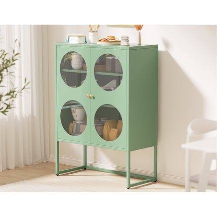 For a beautiful combination of modern functionality and timeless design, the new Artiss Ella Buffet Sideboard will give your home a cheerful, modern refresh. Whether you need extra storage space or want to revamp your space with unique furniture pieces, the Ella is a real statement piece. The two-door cabinet is made from high-quality cold-rolled steel and features two adjustable shelves for all your essentials. The doors feature stylish circular glass panels so you can see exactly what's inside. Each shelf has a 20kg weight capacity, with a 40kg weight capacity for the base and top. The smooth surface is easy to clean and maintain �C simply wipe down with a damp cloth. Adjustable feet pads keep the cabinet in place while also protecting your floors. For extra security, you can attach the cabinet to the wall with the built-in anchor points. Looking for a contemporary glow-up? Get your hands on the Artiss Ella Buffet Sideboard today.