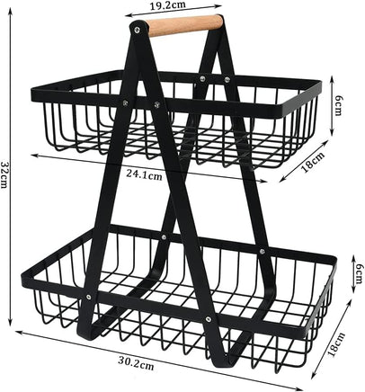 - SPACE-SAVING TIERED STORAGE: Free up counter space with this 2-tier fruit basket stand designed for kitchens, pantries, and dining areas. The stacked design helps you neatly organize fruits, vegetables, snacks, and more in one accessible place.