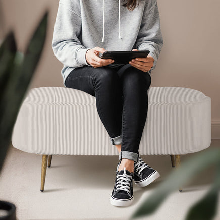 La Bella Coffee Table Storage Ottoman - Ribbed Corduroy Blanket Box Bench ESME - Cream