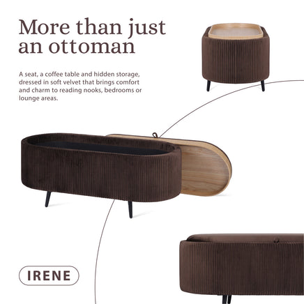 Coffee Table Storage Ottoman - Velvet Padded Blanket Box Bench IRENE BROWN