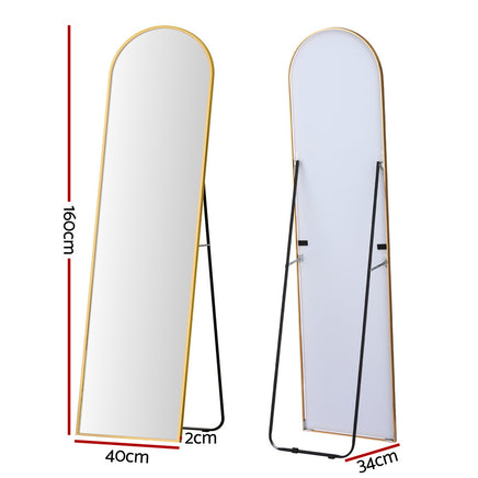 Get a complete head-to-toe view with the Embellir Full Length Mirror. This stunning arch mirror features a slim gold frame, perfect for modern decor. Its versatile design allows it to be used freestanding with the built-in stand or leaned against a wall. Shatterproof glass ensures safety and clarity.