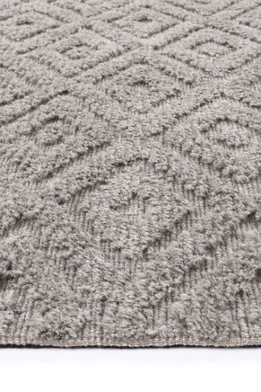 Tribal: Complete any setting with this hand made rug. Soft, lustrous wool yarns are hand-tuftedto create contrasting textures including oversized loops and flat surfaces that are rich in dimension, beautifully styled with classic geometric patterns. Crafted using a 70% wool and 30% Polyester blend, this rug will accent any space with its calm and neutral colour palette making it the perfect choice to add the finishing touch to any room in the house.