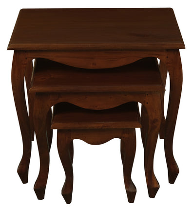 Embrace the timeless elegance of the Queen Ann Nest of Table Set, a captivating ensemble that seamlessly blends classical design with practical functionality. Each table in this exquisite set is meticulously crafted from solid mahogany timber, reflecting a rich heritage of craftsmanship and a dedication to enduring beauty.The Queen Ann style, renowned for its graceful curves and ornate details, is masterfully embodied in this trio of nesting tables. The refined cabriole legs and delicate lines bring an air of sophistication to any room, while the deep mahogany finish adds a touch of warmth and luxury. Perfectly proportioned, these tables are designed to nest together, offering both versatility and style.Weighing a combined 14.0 kg, these tables are robust yet easy to maneuver, ensuring they can adapt to your changing needs and spaces. Arriving fully assembled, the Queen Ann Nest of Tables are ready to enhance your homes décor from the moment they are unboxed.