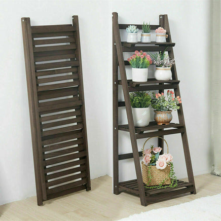 4-Tier Foldable Wooden Ladder Shelf Dark Brown