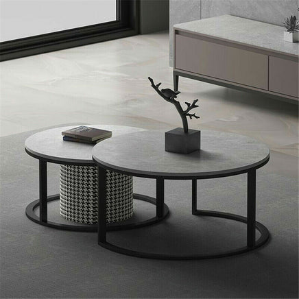 - Elegant Design & Material: Enhance your living space with our set of 2 nesting coffee tables featuring a luxurious grey sintered stone top that mimics the sophisticated look of real marble. Perfect for adding a touch of elegance to any room.