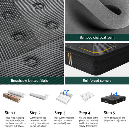 The Giselle Bedding Midnight Series combines luxury and ergonomic support for ultimate comfort. Featuring a 35cm hybrid design, this mattress integrates an independent pocket spring system with bamboo charcoal foam to promote airflow and reduce moisture. The medium-firm Euro Top layer evenly distributes body weight, while high-density foam and 6-turn coils ensure lasting durability. Breathable knitted fabric enhances temperature control, and reinforced edges prevent sagging. Perfect for those seeking balanced support and motion isolation, this mattress adapts to all sleeping positions without compromising stability.