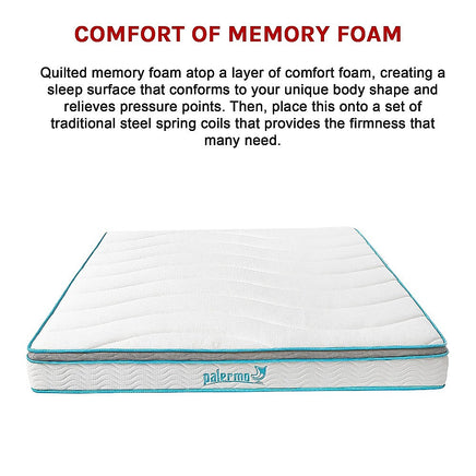 Welcome to the revolutionary comfort of the Palermo hybrid mattress. We quilted memory foam atop a layer of comfort foam, creating a sleep surface that conforms to your unique body shape and relieves pressure points. Then, we place this onto a set of traditional steel spring coils that provides the firmness that many need.