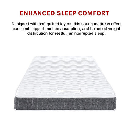 - Enhanced Sleep Comfort Designed with soft quilted layers, this spring mattress offers excellent support, motion absorption, and balanced weight distribution for restful, uninterrupted sleep.