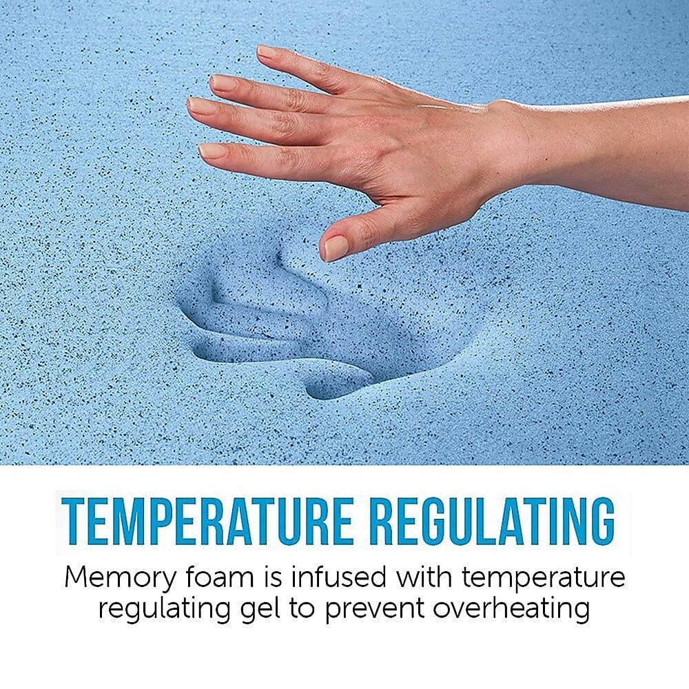 • Gel infused memory foam regulates temperature while conforming to the body to ease pressure points