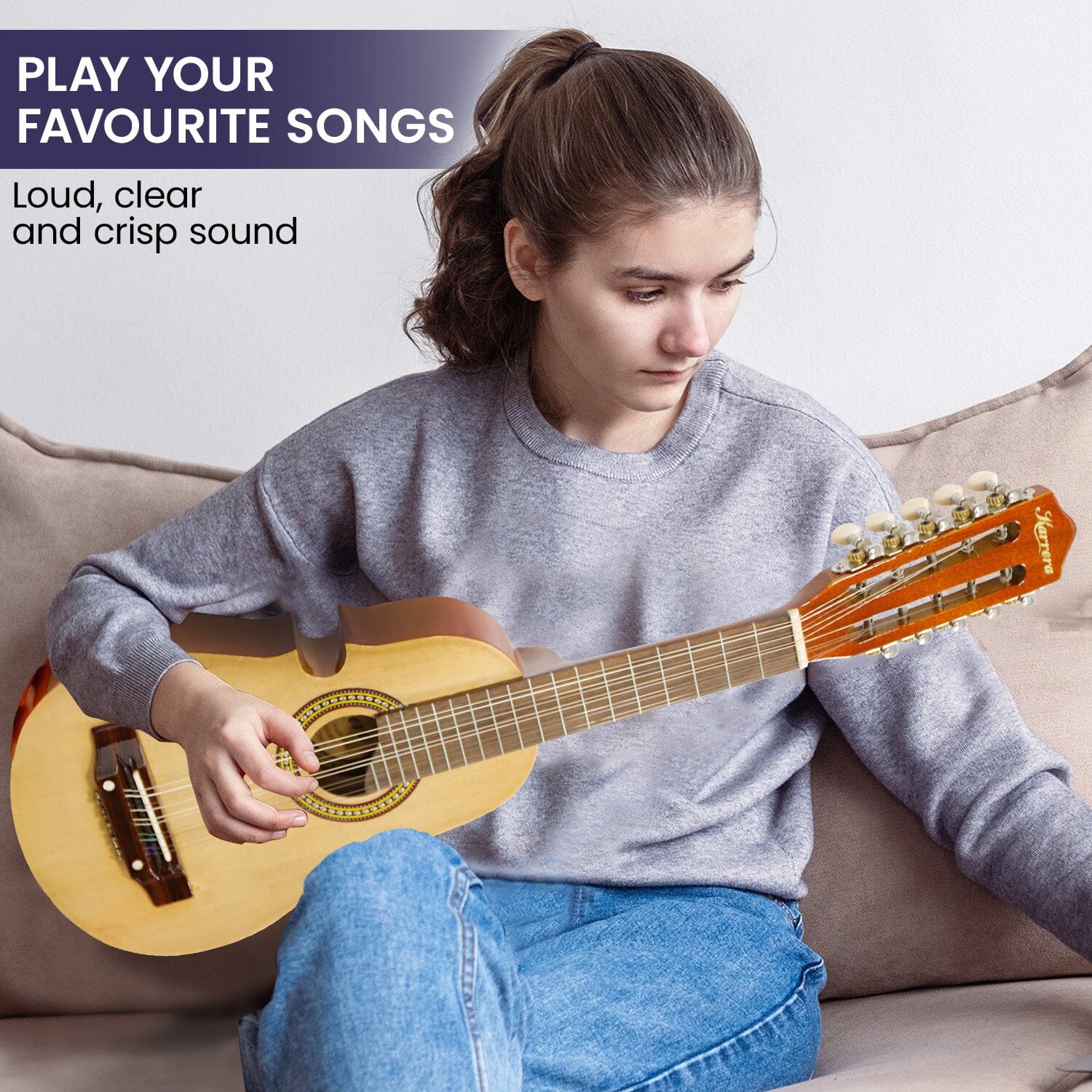 A beautiful traditional instrument of Puerto Rico, this eye-catching Cuatro guitar by Karrera is a great instrument to play for parties and social gatherings. Made from high-quality wood, the Karrera Cuatro Guitar is not only sturdy but its material and shape produce a stunning sound that's sure to impress.
