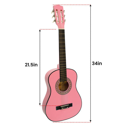 Karrera 34in Acoustic Wooden Childrens Guitar - Pink