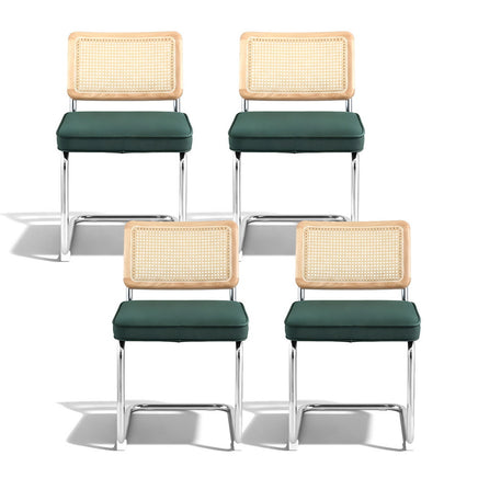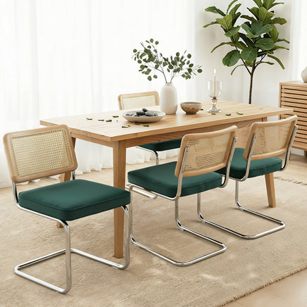 Make a serious statement in your home with this stunning pair of Artiss dining chairs. Combining a unique cantilevered stainless steel frame with a chic wood grain and rattan backrest, these chairs bring a modern, designer look to your dining space.