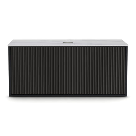 This cabinet combines modern aesthetics with maximum functionality. Featuring a durable sintered stone countertop that resists scratches and moisture, this cabinet is built to last. The handle-free soft-closing drawer adds a touch of elegance and ensures quiet operation. Constructed with quality 15mm MDF board, it offers strength and stability for daily use. Designed for easy installation, it includes a pre-drilled water outlet port and tap hole, making setup a breeze. The smooth surfaces are also easy to clean, keeping your bathroom looking pristine effortlessly. Please note, the basin is not included.