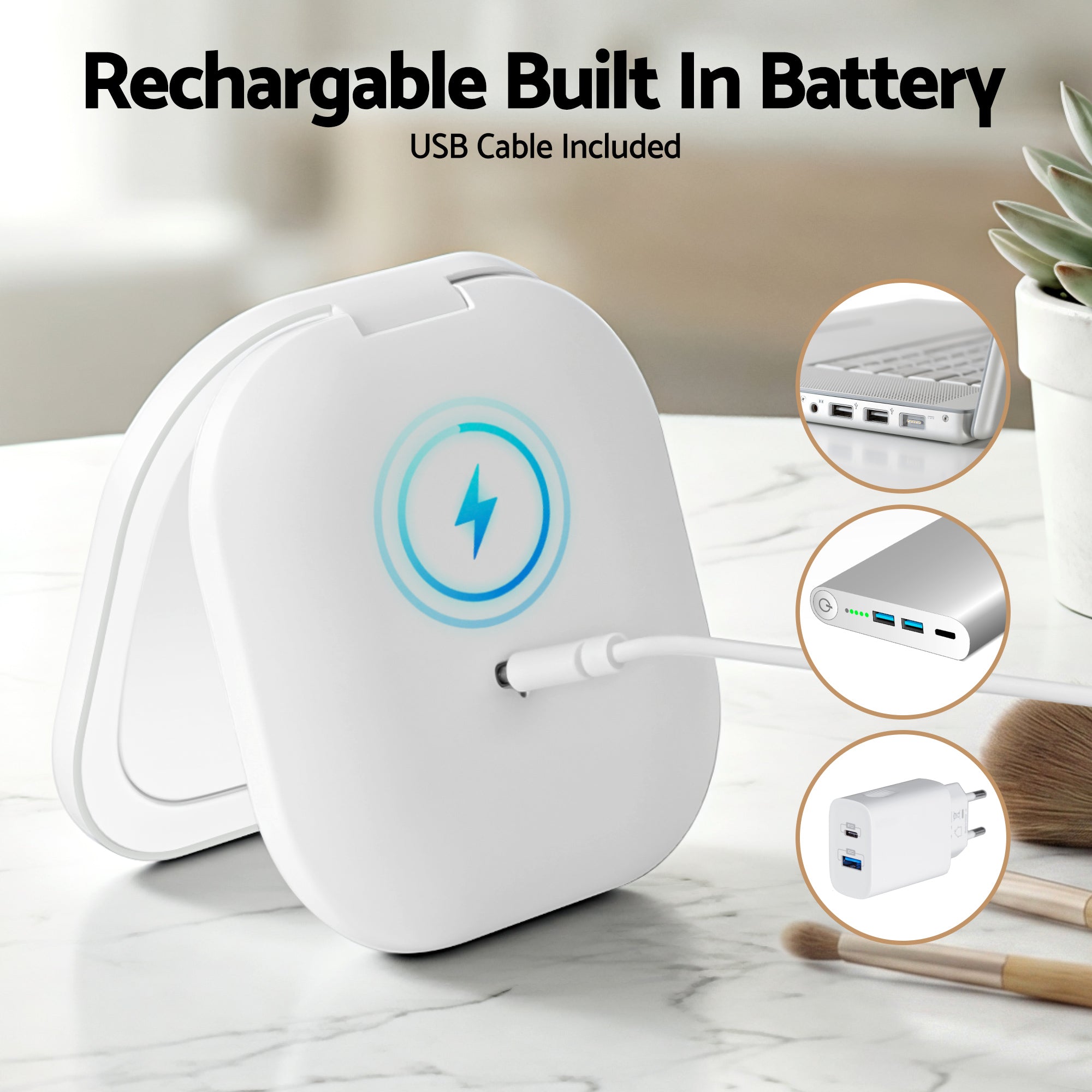 The Embellir LED Compact Mirror is your portable, professional makeup studio. Folding to just 9x9x2cm—smaller than a phone—it fits in any bag or pocket. It features dual-sided 1x and powerful 10x magnification for full-face and detailed work. With 3 colour temperatures and adjustable brightness, it simulates any lighting for perfect colour accuracy. The rechargeable battery and included USB cable offer cordless freedom. Presented in a gift box with pouch, it's the perfect practical and stylish present.