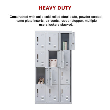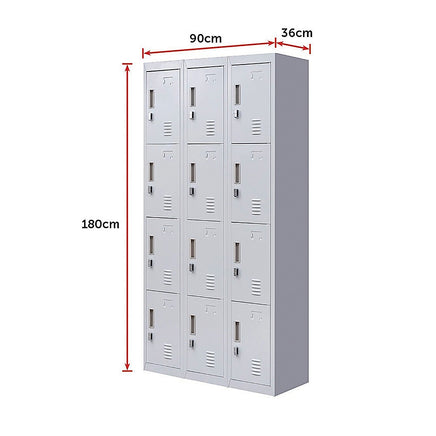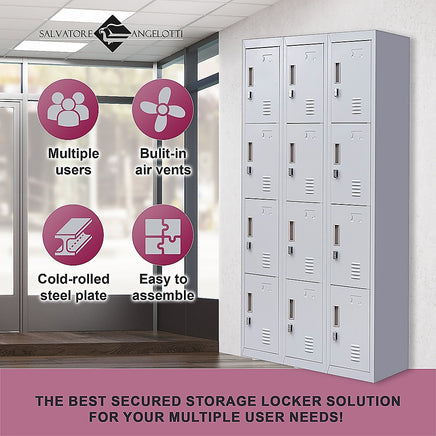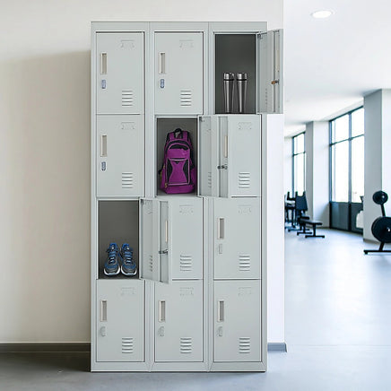 The unit has 12 individual locker compartments stacked in a 3 x 4 grid. Each locker provides ample space for personal items and can hold up to 30 kg. Built-in ventilations slits keep the stored items from smelling musty. Users may also customise their locker with a name tag or label in the designated slot provided. This comes comes with padlock-operated lock to ensure safety of your belongings.