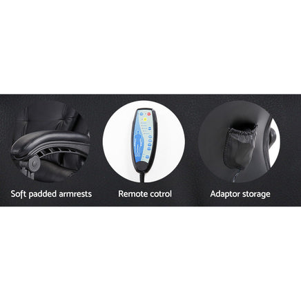 So as you seat in the well-padded high-back premium faux leather seat, you can have at your fingertips a remote control that brings on a soothing eight-point massage aimed at four different parts of your body: upper and lower back, hips and thighs. Choose from five vibration modes as the massage chair systematically does it magic to relieve back tension, soothe aching muscles and provide all-round comfort. You can also set it for 15, 30 or 60 minutes duration with four intensity levels to choose from. And that's not all. It also comes with a retractable footrest that allows you to put up your tired feet for much needed solace.