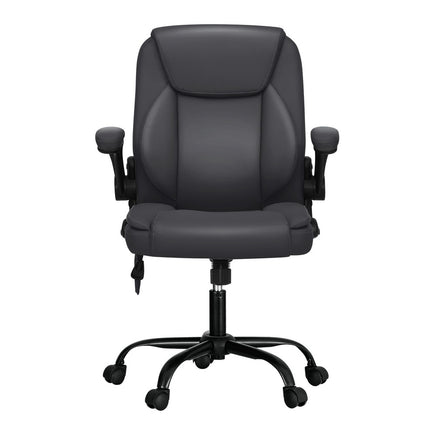 Artiss 2 Point Massage Office Chair Leather Mid Back Grey SALE