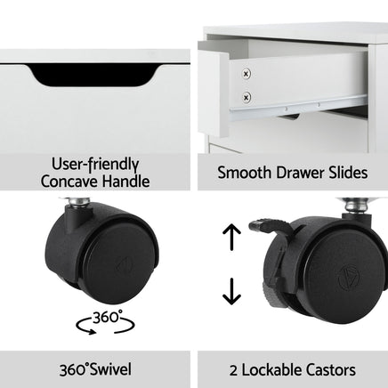 The Artiss Filing Cabinet offers seamless functionality with smooth drawer slides and concave handles for easy access. Equipped with 360-degree rolling casters and two locking wheels for stability, this cabinet features five large drawers to neatly organize your essentials.