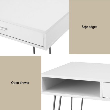 Maximize your productivity and style with the Artiss Computer Desk. This compact desk is designed for modern living, featuring a sleek white MDF desktop elegantly supported by trendy hairpin metal legs. It's the perfect blend of minimalist design and robust functionality, ideal for home offices, studios, or small apartments.