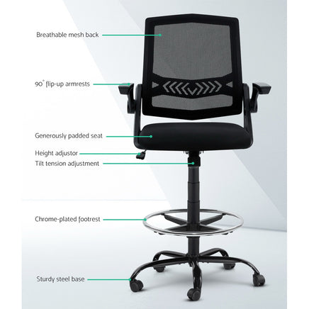 Artiss Office Chair Drafting Stool Mesh Chairs Black