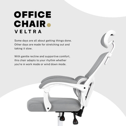 La Bella Ergonomic Office Chair - Lumbar Support, Adjustable Headrest VELTRA - Grey