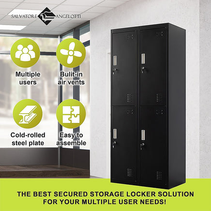 For the gym, at school, or at the office, and whenever you need extra space for multiple users, the 4-Door Gym Locker is your affordable storage solution.