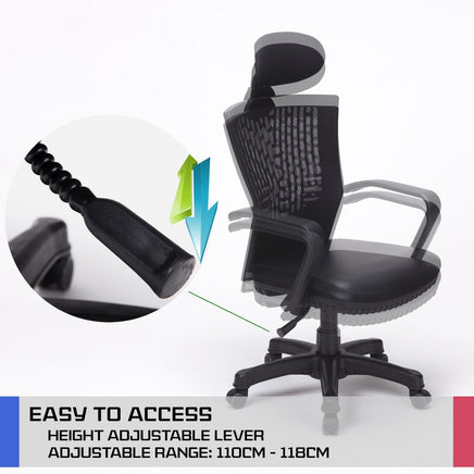 • 1x Korean Made Mesh Back Office Chair with Head Rest Black
