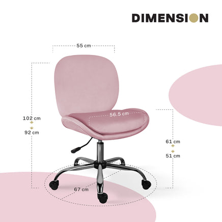 La Bella Office Desk Chair - Velvet Armless Swivel Study Seat OVOID - Pink