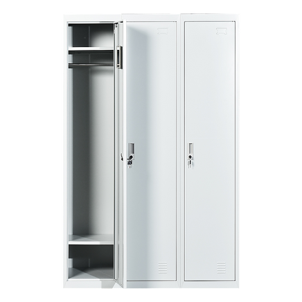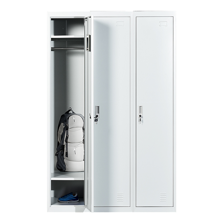 The locker is constructed with solid cold-rolled steel plate for excellent sturdiness and durability, not to mention an attractive look. The steel is also powder-coated to resist corrosion. The locker measures 180 x 114 x 45 cm, and the maximum recommended weight capacity is approximately 30kg per locker. Privacy and security are assured with a simple lock and key design. There are spaces designated for labels to help identify lockers, and air vents are built-in to assure sufficient ventilation. Each lock comes with 2 keys.
