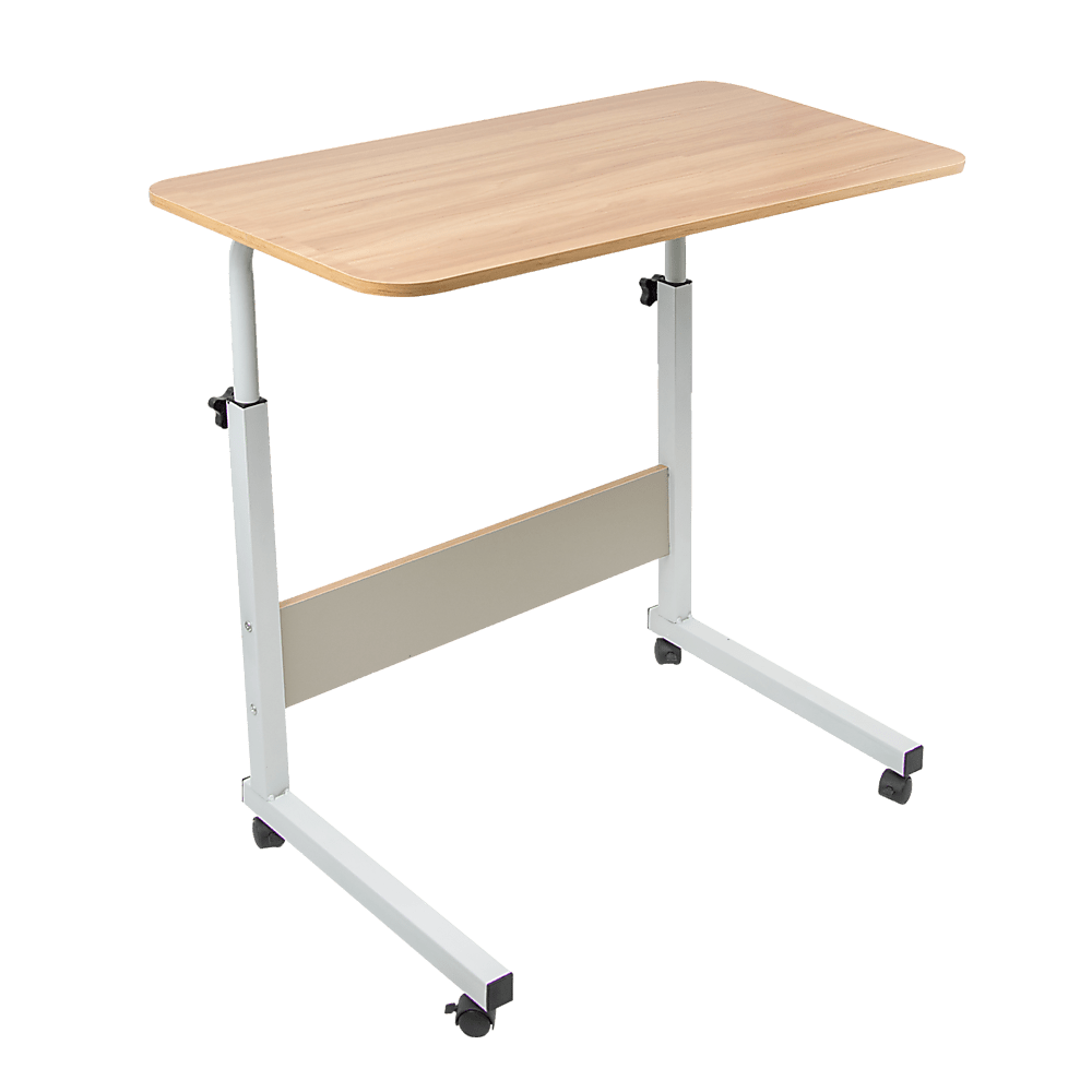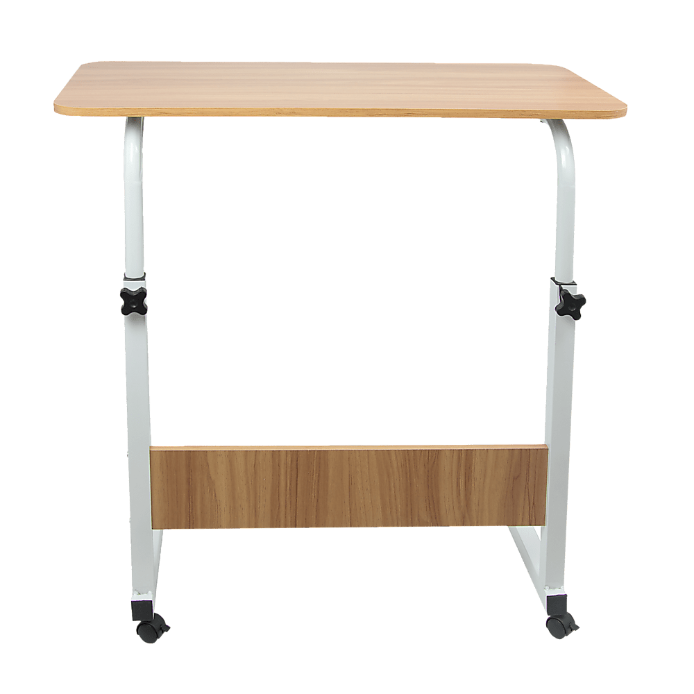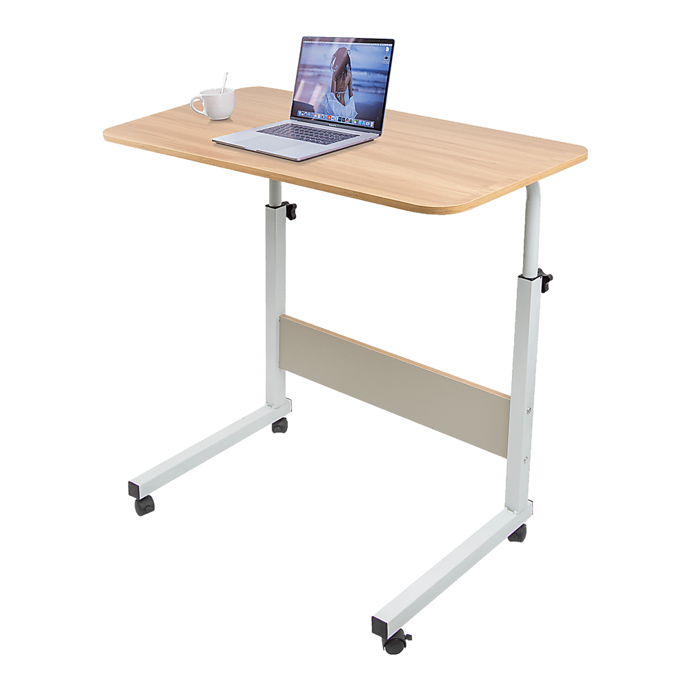 Its compact size makes it easy to store in a closet when you need more space. With a sleek wooden top and pull board, its natural design will look great with any décor. An adjustable desktop allows people of varying heights to use this computer desk, while a wide work surface provides room for a laptop, a mobile device, and extra materials.