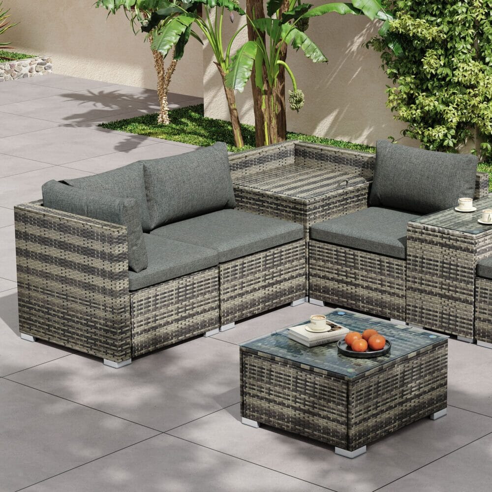 If you want to enjoy a luxurious life in the garden, balcony or swimming pool, you can choose this set of multi-functional modular combination furniture. It can be adapted to any environment, and can be matched according to your idea to get the effect you want. This set of outdoor furniture has a sense of design. According to modern design standards, grey and streamlined lines are very popular. This set of furniture not only looks beautiful, but also gives consideration to comfort.