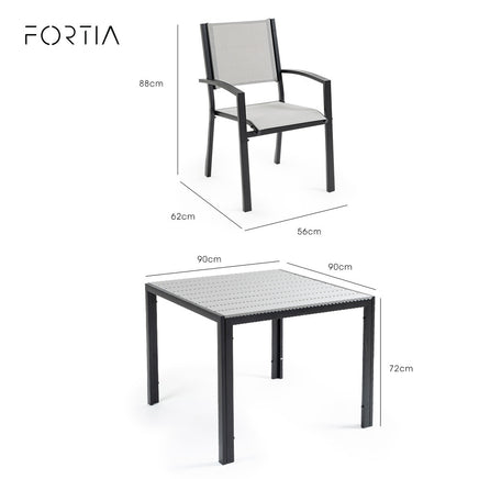 Enhance your outdoor living space with this Fortia 5-Piece Dining Set, perfect for gardens, terraces, or patios. This collection includes a stylish square table and four premium chairs.