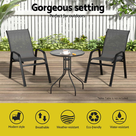 Gardeon 2PC Outdoor Dining Chairs Stackable Lounge Chair Patio Furniture Grey