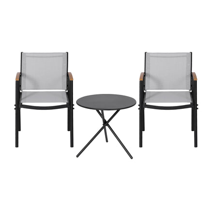 Enjoy lasting comfort with the Gardeon patio set. Its sturdy, powder-coated solid steel frame provides exceptional strength, weather resistance, and anti-rust durability. The upgraded Textilene fabric chairs are breathable for a cool feel in summer, plus they're weather-resistant and easy to clean. Designed with ergonomic armrests and rust-proof screw covers for total relaxation. This lightweight, modern set is easily moved to your garden, balcony, or poolside. Assembly is quick and hassle-free, taking just 15-20 minutes with all parts and tools included.