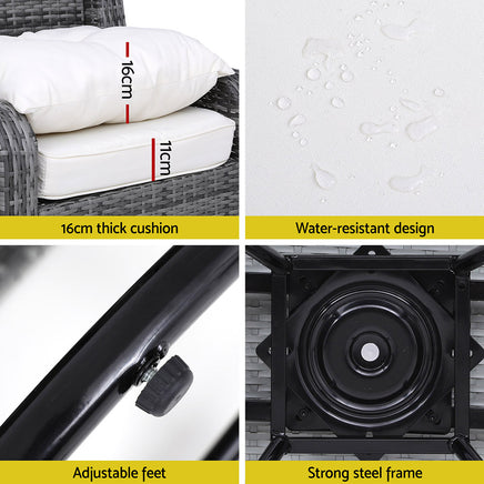 Gardeon 3PC Outdoor Furniture Bistro Set Lounge Wicker Swivel Chairs Table Cushion Grey SALE