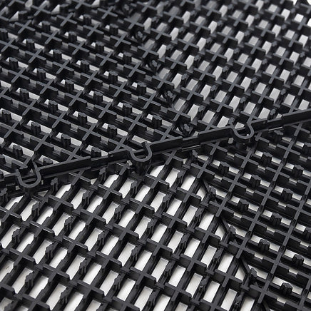 Made from impact-resistant polypropylene, these hard plastic tiles are designed to resist staining from oil, gas, and household chemicals. Their sturdy construction allows them to withstand heavy rolling vehicle loads, making them ideal for garage floors.