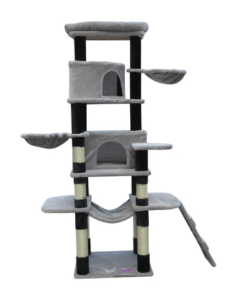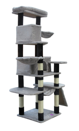 Our latest cat tree is the ultimate home for your cat. It combines scratching, perching, chasing, climbing and just plain fun all in one piece. The multiple platforms allow your cats to jump around, and the plush carpeted surface provides extra comfort.