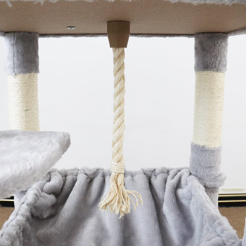 Cats are crazy creatures who need plenty of stimulation to keep them happy. If you have a cat, this is the perfect scratching post for your furry friend! The Supreme Palace features soft platforms and resting areas so they can take some much-needed snooze time while getting their nails groomed at night or relaxing in an adorable plush lounge during day-time naps on these beautifully designed furnishings that will make anyone forget about having an indoor feline ever again--especially if it's got two levels like ours does!.