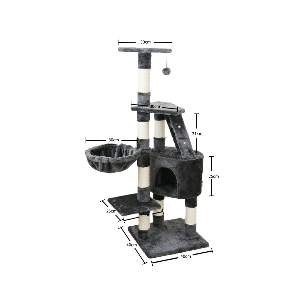 CATIO Equanimity Scratching Cat Tree 119cm is a quality scratching tree made of chipboard and jute twine, so it's sturdy enough to withstand your cat's scratches. Plus, it features multiple soft platforms for your cat to lounge on. With its sleek design, it is also a great addition to any home décor. Give your cat the ultimate feline comfort today!