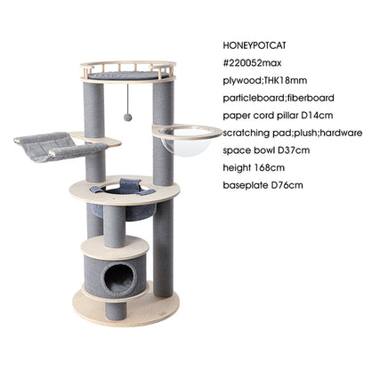 HONEYPOTCAT Majestic Reinforced Multi-Level Cat Tree With Hammock - 168cm SALE