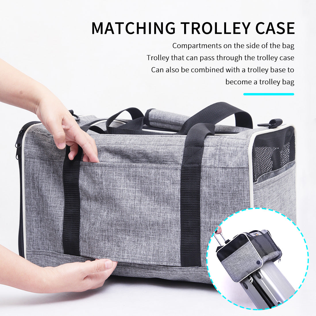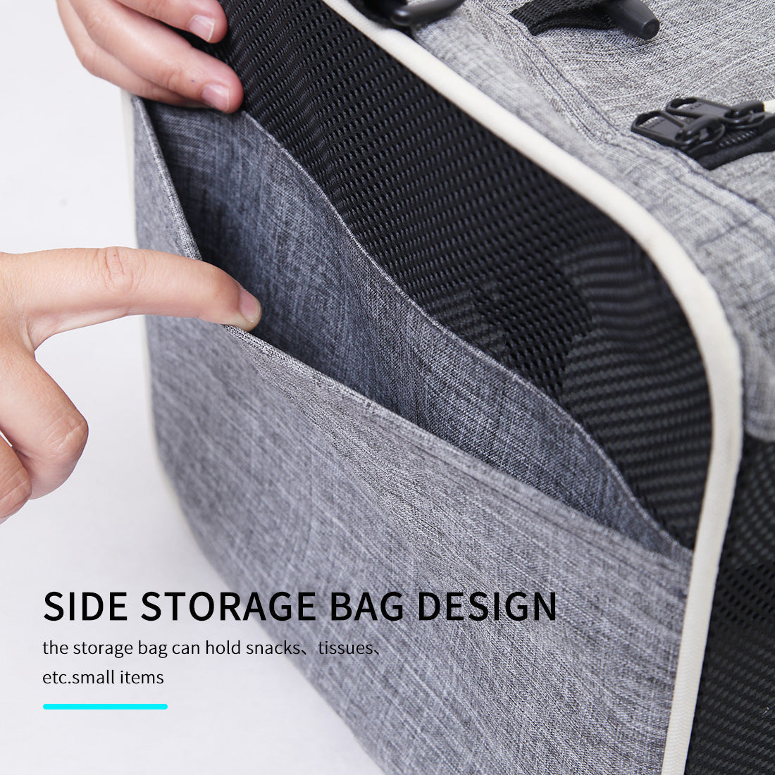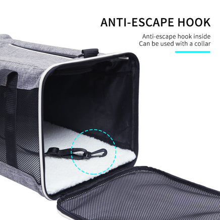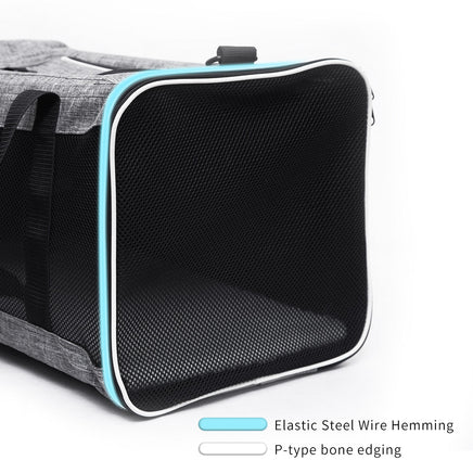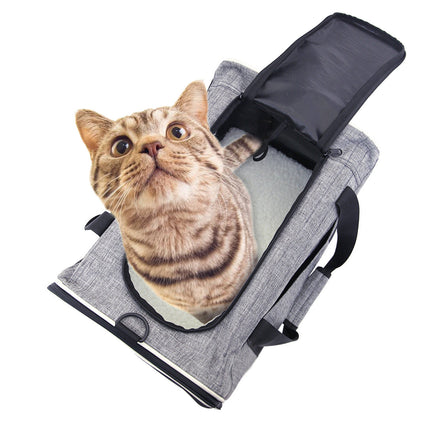 WATERPROOF DURABLE -This cat carrier is made of durable, lightweight cationic fabric and mesh cloth. The side mesh will not only give a safe and comfortable travel for your pet, but also easy for you to check on your pet .