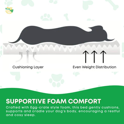 Supportive Foam Comfort – Egg-crate style foam gently cushions your dog’s body for enhanced relaxation and a cozy rest.