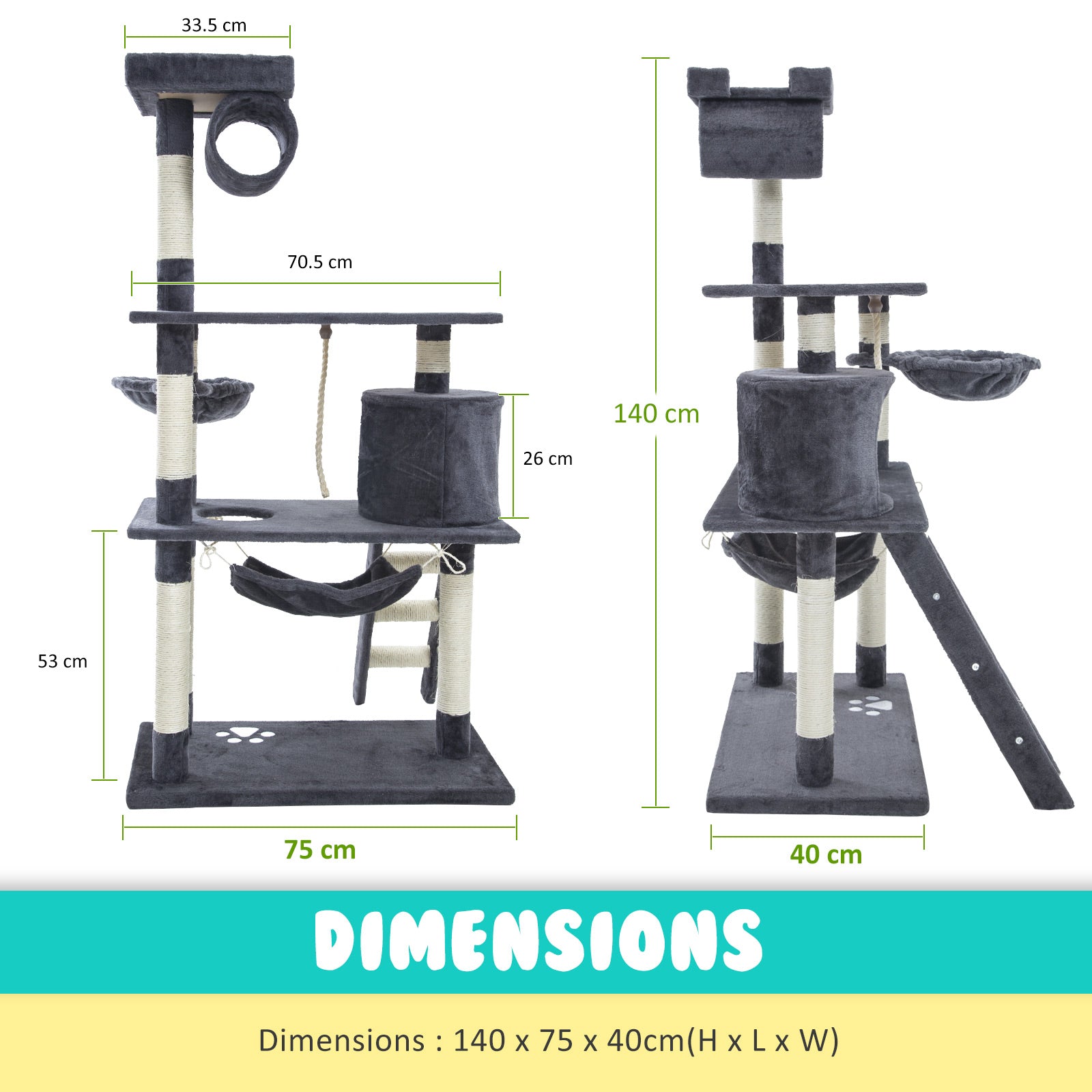 Paw Mate Cat Tree Multi Level Scratcher Maple 140cm - Grey