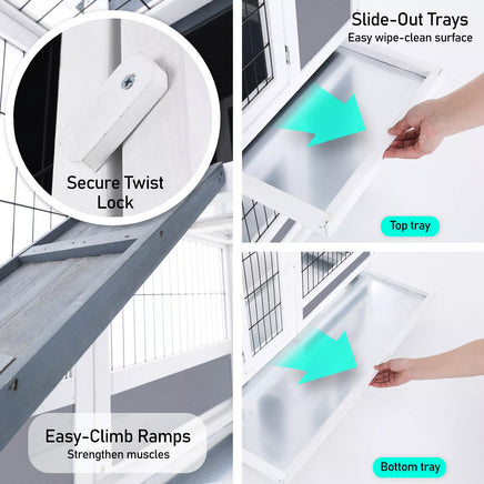 Paw Mate Rabbit Hutch Chicken Coop 96.5x56x90.5cm 2 Storey Pet Cage Run Wheels