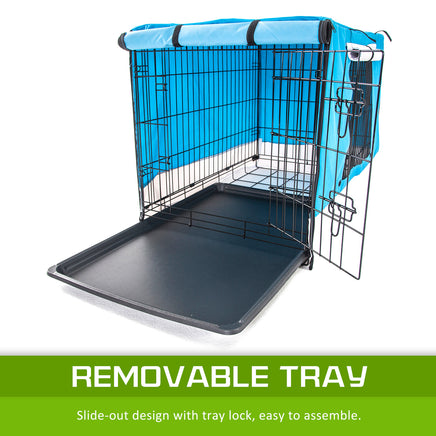 Paw Mate Wire Dog Cage Foldable Crate Kennel 42in with Tray + Blue Cover Combo