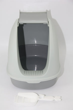 YES4PETS Portable Hooded Cat Toilet Litter Box Tray House with Handle and Scoop Grey