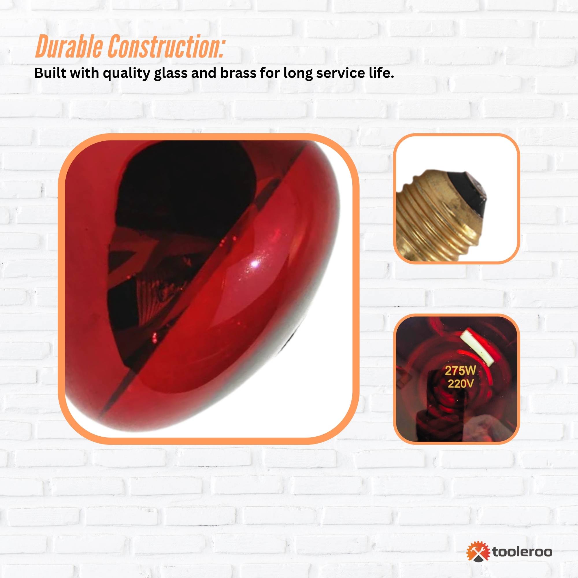 Tooleroo 275W Infrared Heat Lamp Bulb - Red Edison Screw Therapy Light YC-868B
