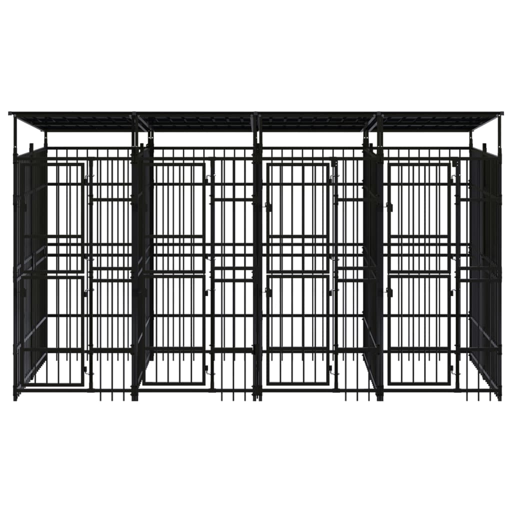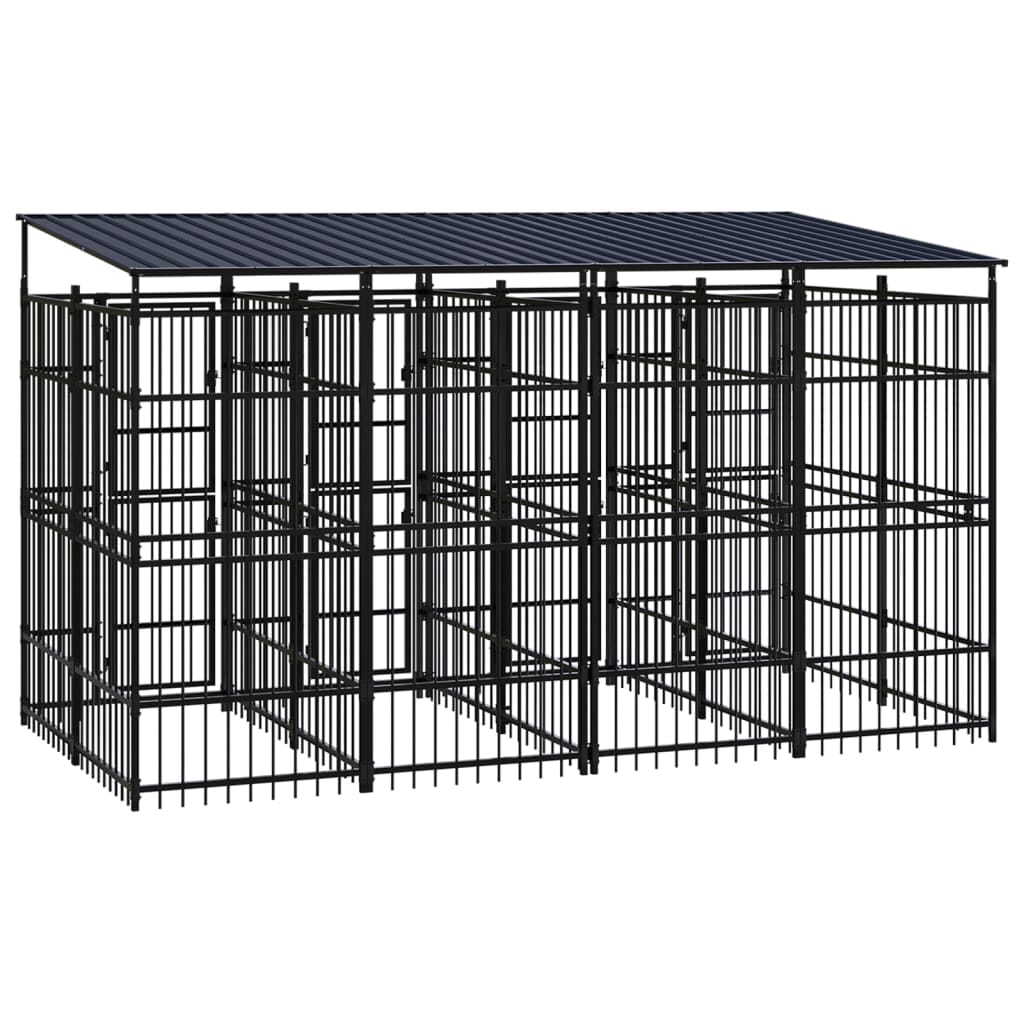 This versatile dog kennel features multiple uses: playing, exercising, training, or simply keeping your dog safe. It will be the perfect play paradise for your furry friends! This dog kennel provides ample exercise space. The walls of steel bars help prevent mischief and unexpected accidents while enabling ventilation. Thanks to the sturdy powder-coated steel construction, this dog kennel is durable and built to last. The roof provides protection from sun, rain, snow, as well as other weather conditions. The hinged door with a lockable latch system ensures extra security and safety for your dogs.